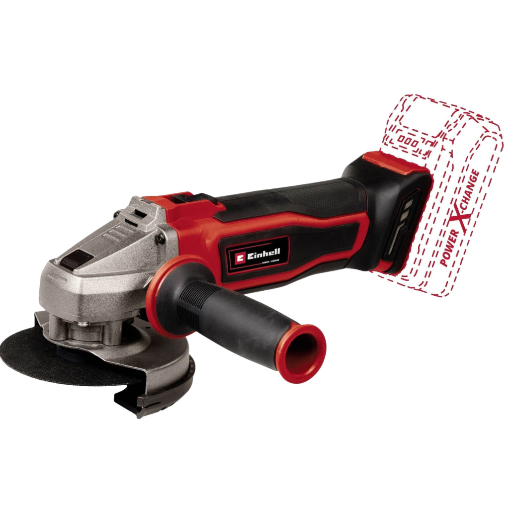 La amoladora angular sin cable TE-AG 18/115 Li - Solo de Einhell es la amoladora angular más ligera de su clase y cuenta con una robusta carcasa de aluminio. Forma parte de la familia Power X-Change, por lo que las baterías con celdas de iones de litio de alta calidad pueden utilizarse para todos los miembros de la familia Power X-Change. La batería y el cargador están disponibles por separado, por ejemplo, como juego de arranque de alto rendimiento. Para obtener resultados óptimos de corte, amolado y desbaste se recomienda utilizar una batería de 2,6 Ah Plus o superior. Gracias a la función de arranque suave y a la protección de reinicio, la amoladora angular se pone en marcha sin problemas y es más segura de usar. Gracias a su diseño estilizado con empuñadura suave y ergonómica y a la empuñadura adicional que se puede montar en tres posiciones disponibles, la herramienta ofrece un manejo cómodo. La guía de aire modificada garantiza una refrigeración óptima de la herramienta y un bajo esfuerzo del engranaje durante el funcionamiento. La protección del disco está dotada de un sistema de ajuste rápido que puede adaptarse a cualquier tarea con un simple giro de la mano. Una desconexión por sobrecarga contribuye a una mayor seguridad y a una vida útil más larga. Se suministra sin disco de corte.