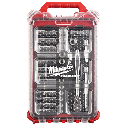 Nuestro juego de trinquete y dados incluye dados con FOUR FLAT™ Sides que evitan que rueden y son compatibles con llaves para una máxima productividad. La herramienta de trinquete de 90 dientes proporciona un arco de giro de 4° y un perfil delgado para trabajar en espacios más reducidos. Hemos estampado los tamaños en cada dado para una fácil visibilidad de lectura. Puede mantener nuestro juego de trinquete y dados de 32 piezas con impulsión de 3/8 in. organizado en el organizador compacto de perfil bajo PACKOUT™ incluido, equipado con una parte superior transparente para una fácil identificación de las piezas de un vistazo. Este organizador PACKOUT™ tiene clasificación IP65 y está fabricado con materiales resistentes a los impactos para una mayor durabilidad dentro y fuera del lugar de trabajo con una bisagra reforzada y pestillos de alta resistencia. El organizador compacto de perfil bajo es parte del sistema de almacenamiento modular PACKOUT™ de MILWAUKEE®, lo que le permite construir sistemas de almacenamiento personalizados para transportar y organizar fácilmente sus herramientas y accesorios. Este kit incluye un juego de 32 piezas de trinquete y dados con accionamiento métrico de 3/8 pulg. y un organizador compacto de perfil bajo PACKOUT™.