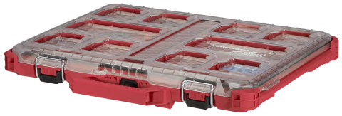 Nuestro sistema de almacenamiento modular PACKOUT™ forma parte del sistema de almacenamiento más versátil y duradero de la industria. El organizador de perfil bajo PACKOUT™ está fabricado con materiales resistentes a los impactos, de modo que pueda soportar entornos difíciles en el lugar de trabajo. Un sello impermeable con clasificación IP65 protege las herramientas, accesorios y piezas pequeñas de la lluvia y otros residuos del lugar de trabajo. El interior poco profundo del organizador cuenta con 10 recipientes de almacenamiento desmontables con divisores desmontables. La tapa transparente del organizador sella los recipientes para evitar que los contenidos se desplacen durante el transporte. Los cierres para servicio pesado y las bisagras reforzadas permiten que el organizador delgado mantenga el contenido seguro y protegido. Nuestro almacenamiento modular PACKOUT™ le permite personalizar y construir su propio sistema de almacenamiento para transportar y organizar fácilmente sus herramientas y accesorios.