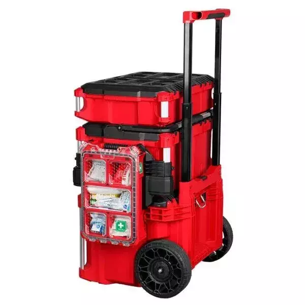 Se bloquea firmemente en las esquinas reforzadas con metal de la caja de herramientas PACKOUT™